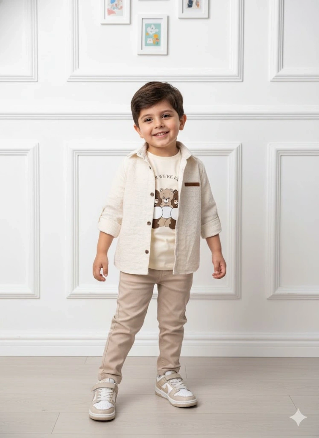 Erkek Çocuk Kolu Ayarlanabilir Gömlekli Pantolonlu Tişörtlü Üçlü Takım