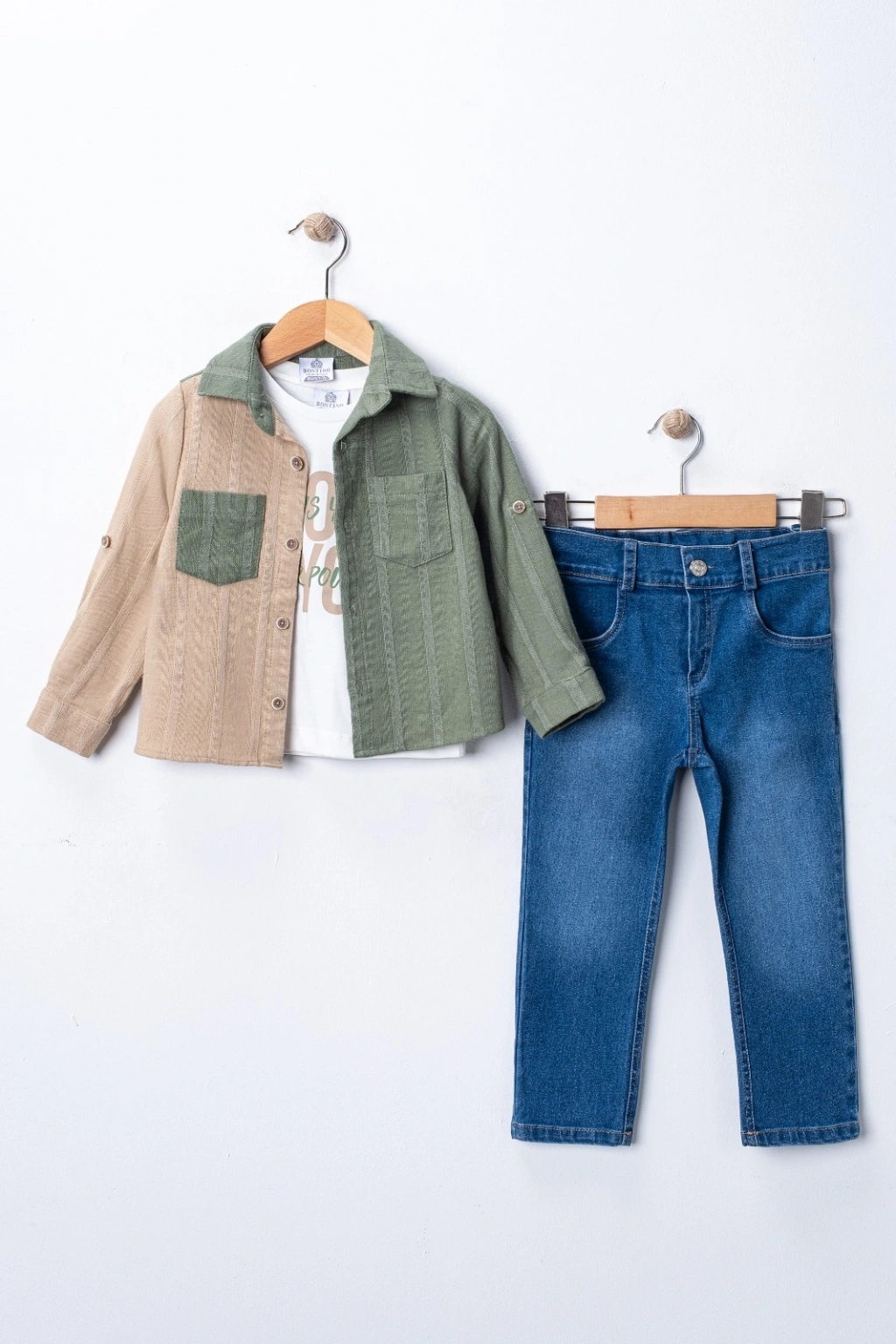 Paket İçeriği: 1 Adet Gömlek, 1 Adet Kısa Kollu Tişört, 1 Adet Jean Pantolon.