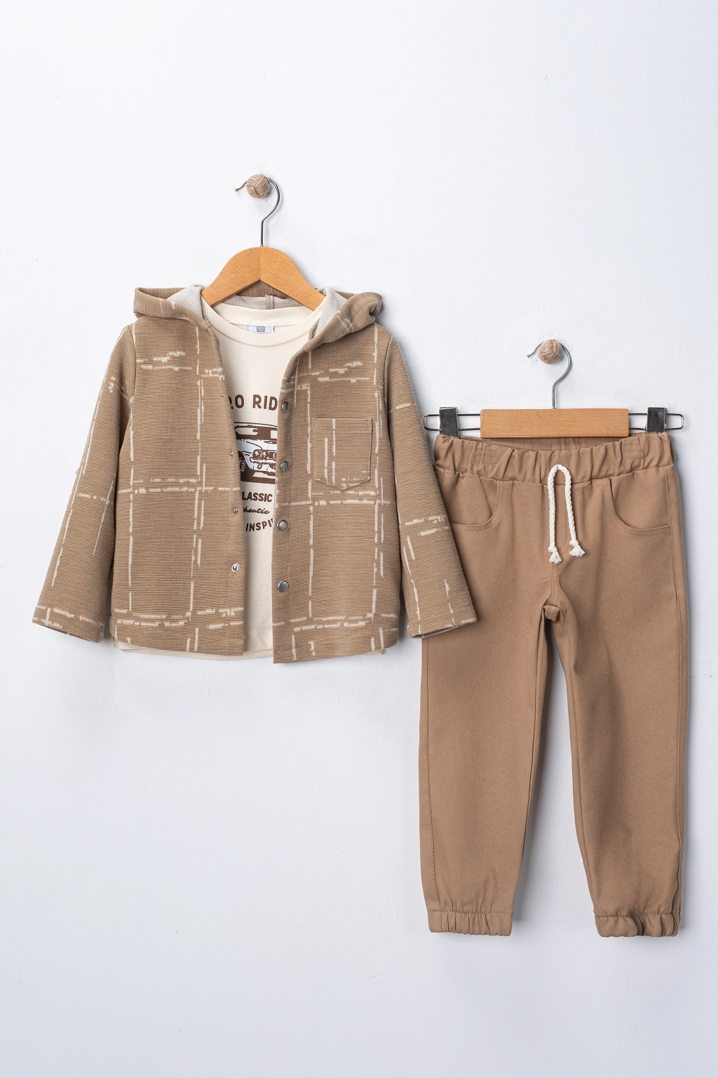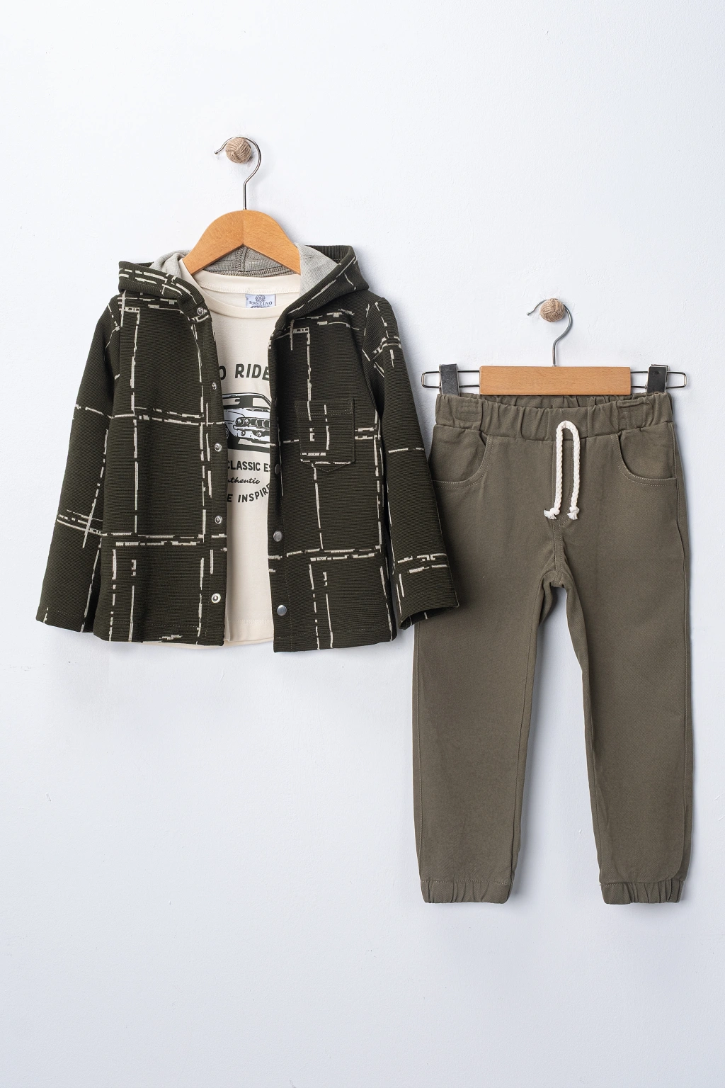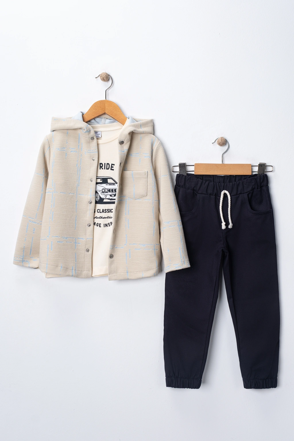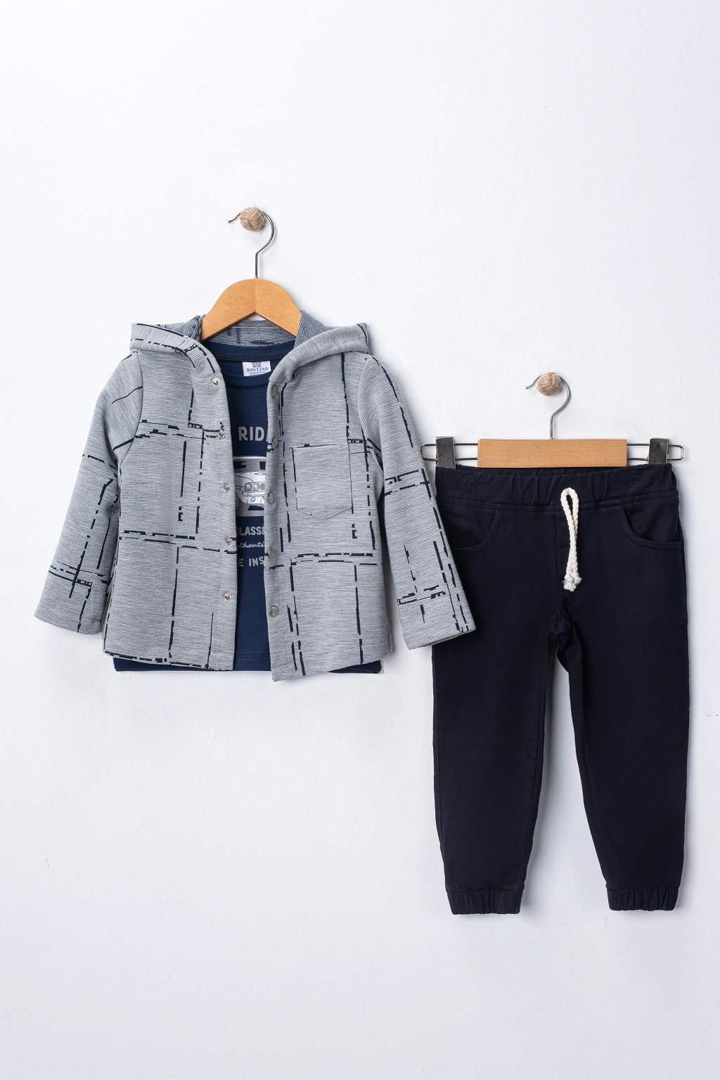 Erkek Çocuk Hırkalı Gömlekli ve Pantolonlu Üçlü Lüks Takım