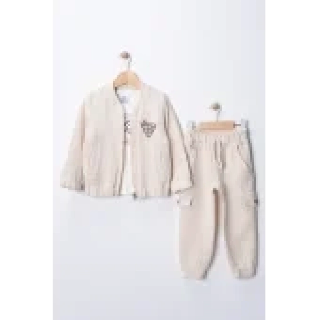 • Şık Detaylar: Baskılı içlik, nakışlı hırka ve modern kesimli pantolon ile çocuğunuz her zaman trend.