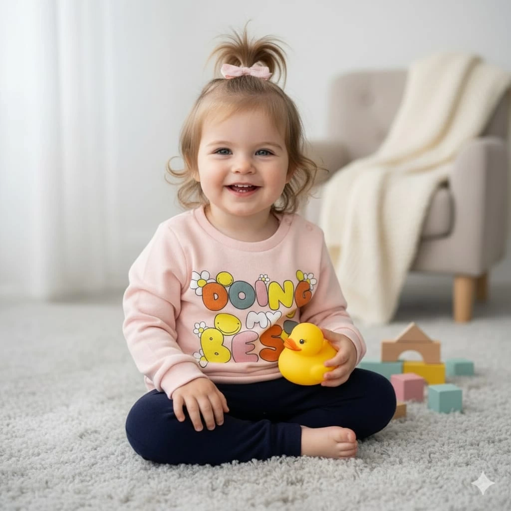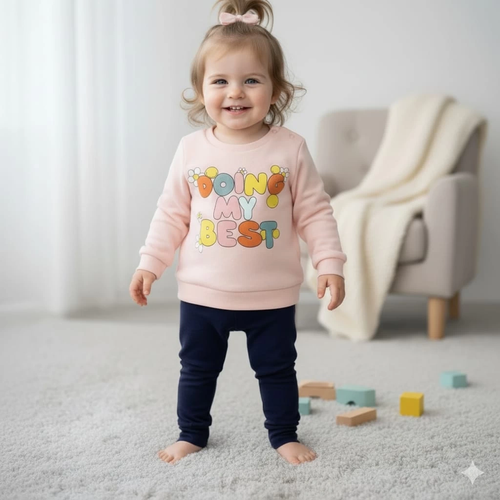 -Ürünümüz görseldeki gibi Doing My Best baskılı ve çıt çıtlıdır.