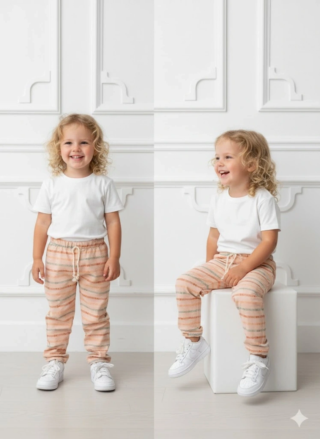 Hem günlük kullanımda hem de kreş/okul kombinlerinde ideal olan bu esnek pantolonlar, çocuğunuzun rahatça hareket etmesini sağlar.