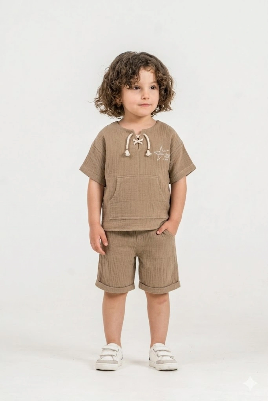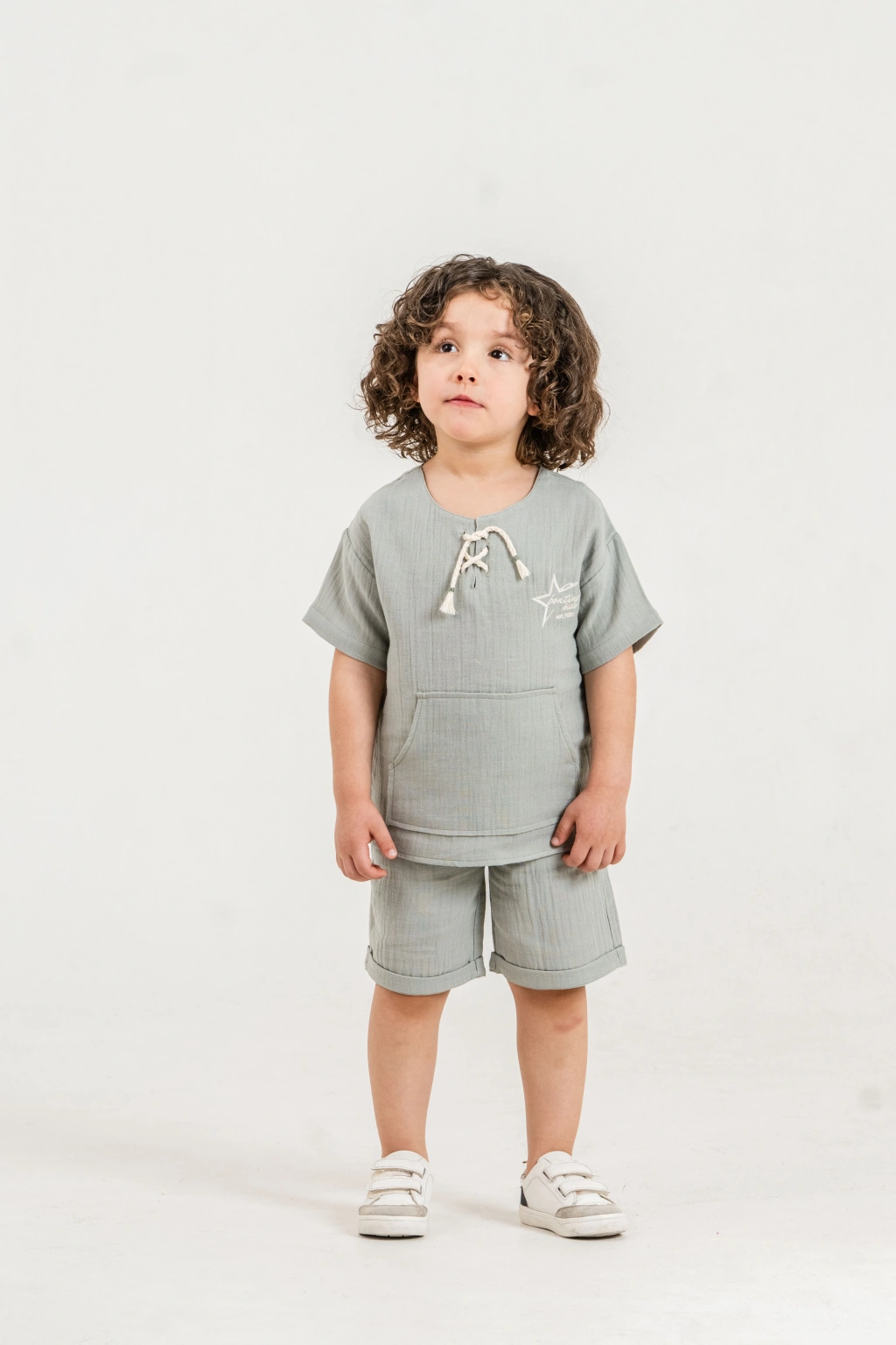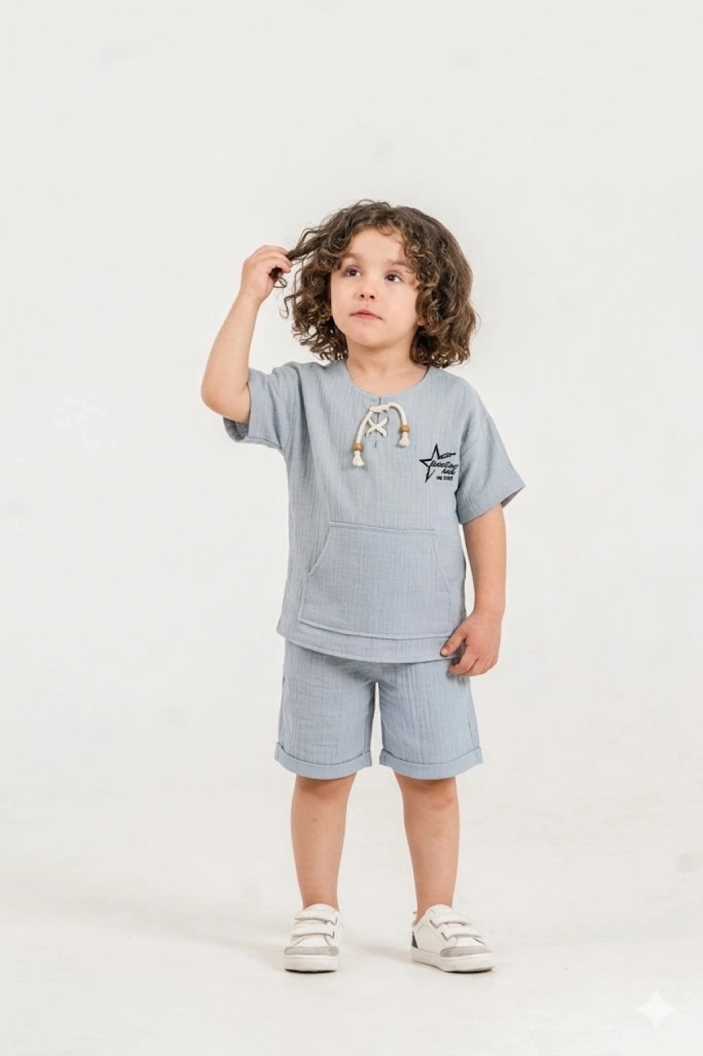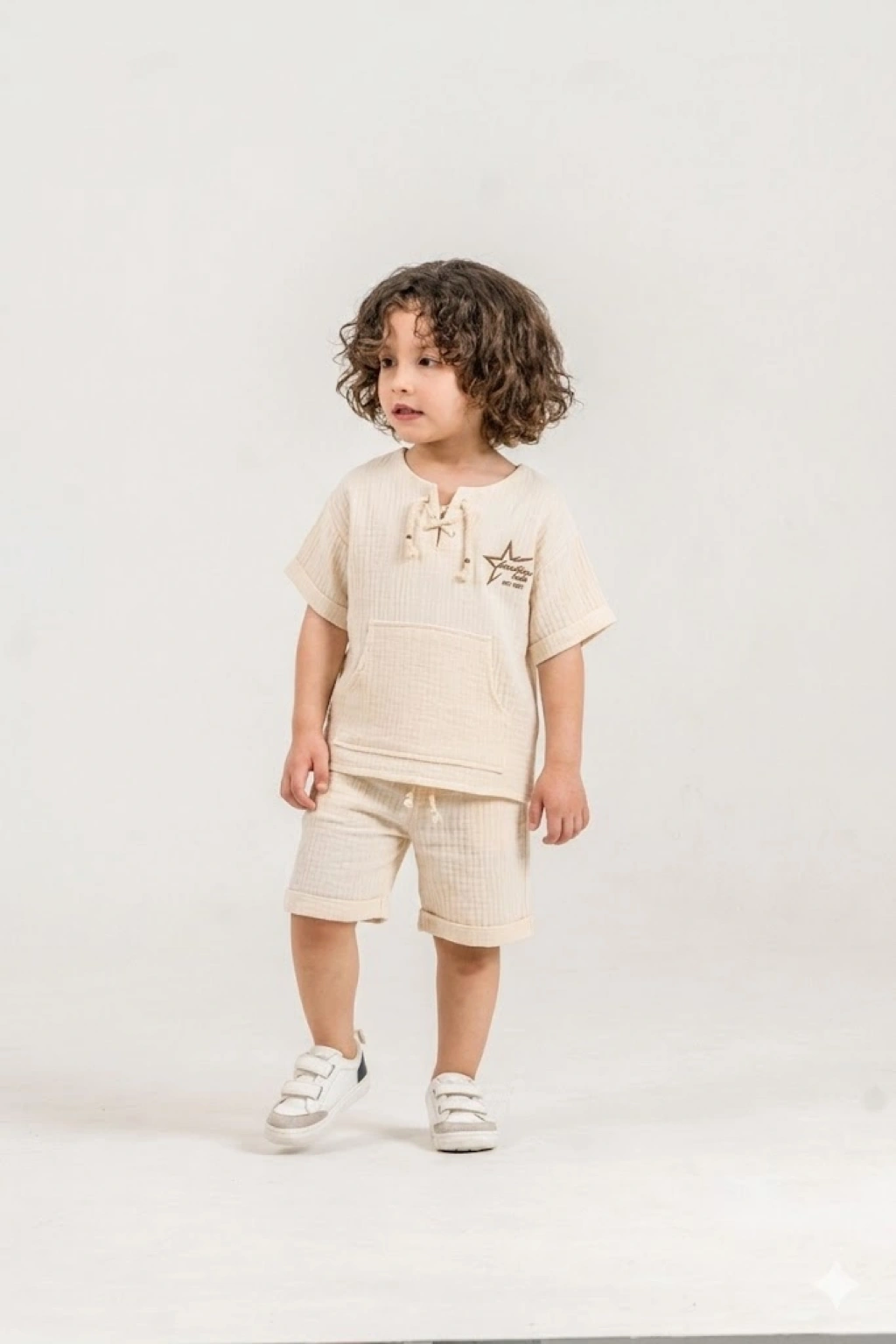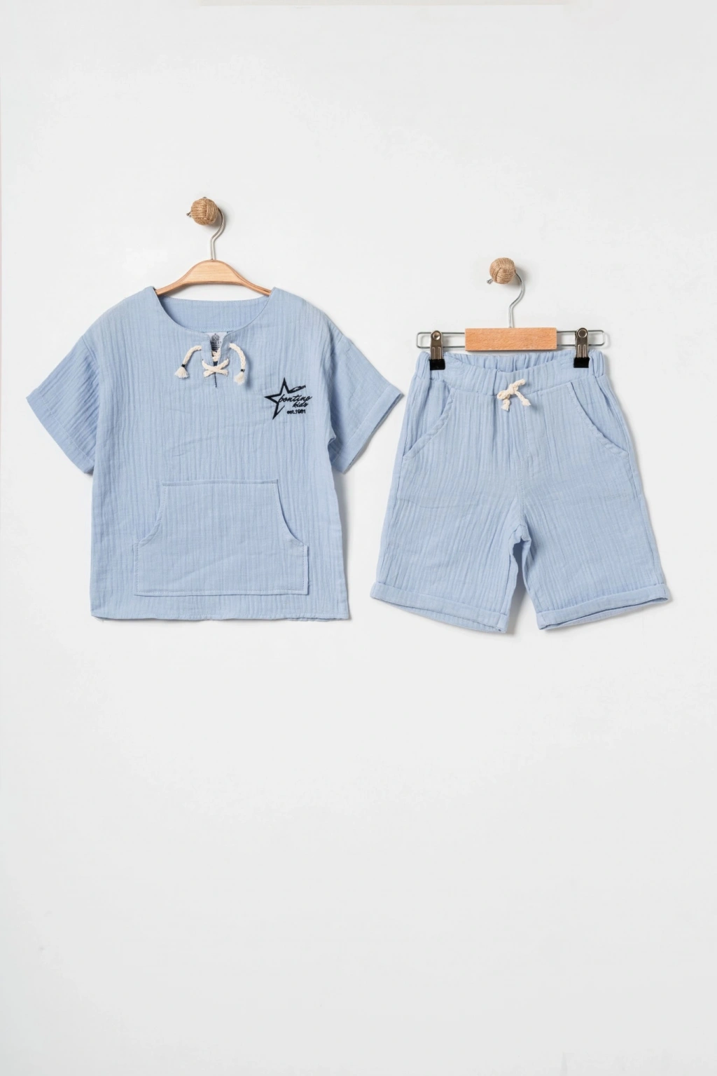 Bontino Kids olarak, miniklerin hassas cildine en uygun dokuyu Türkiye’de özenle ürettik. Yaz aylarının vazgeçilmezi olan %100 pamuk müslin kumaş yapısıyla tasarlanan bu takım, nefes alan dokusu sayesinde terlemeyi önler ve gün boyu konfor sağlar.