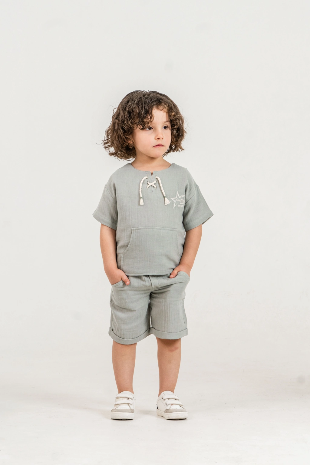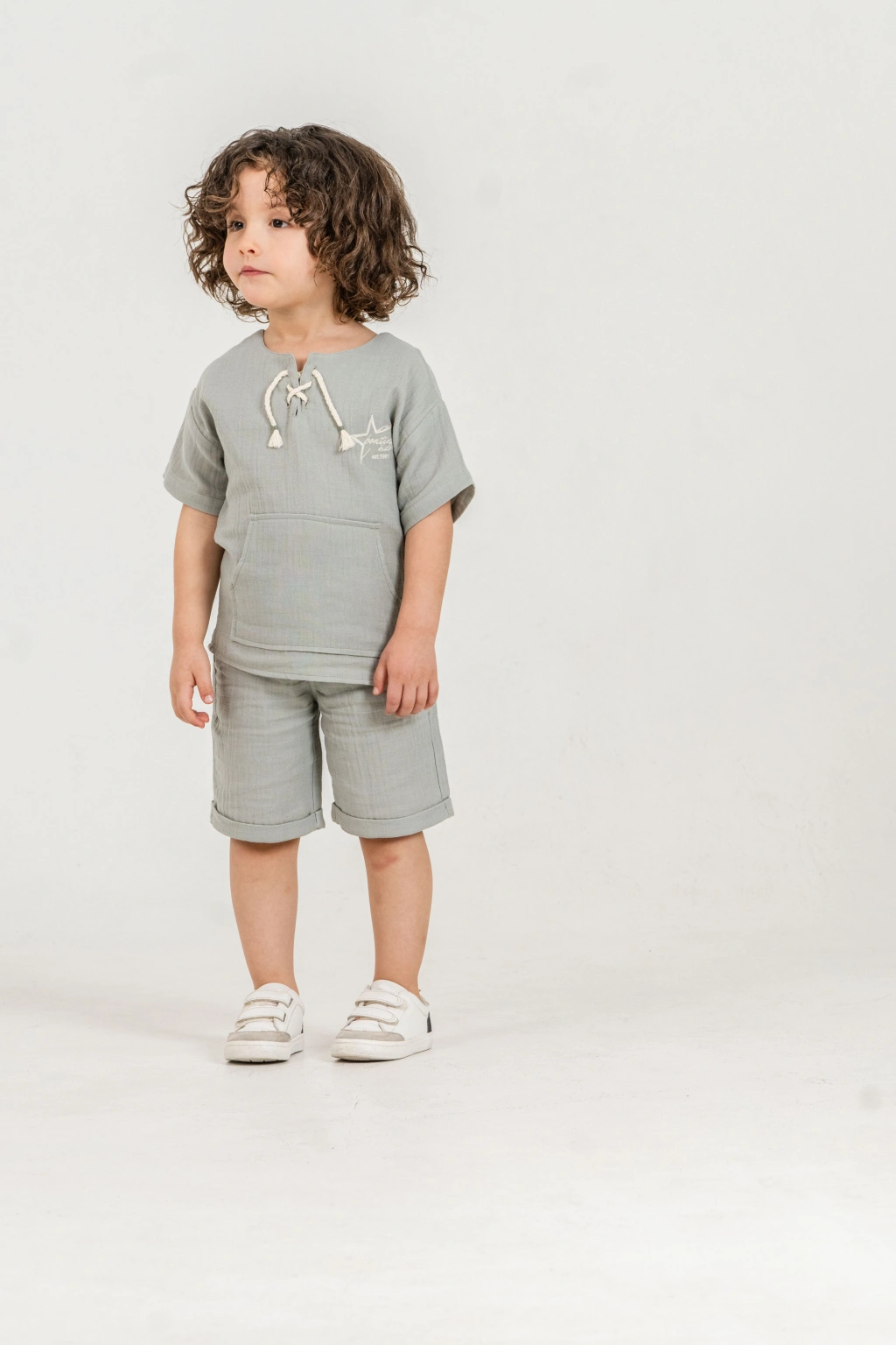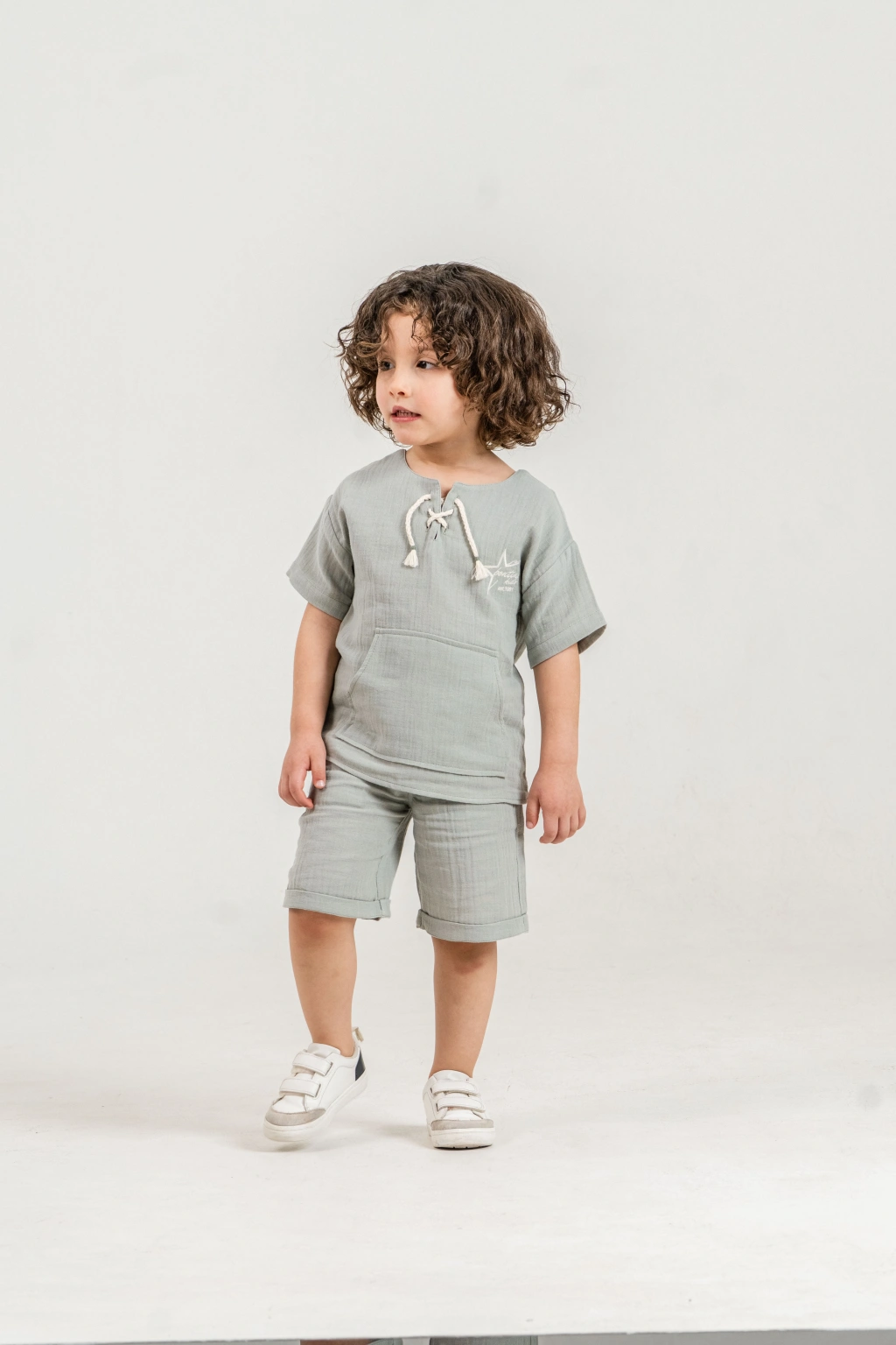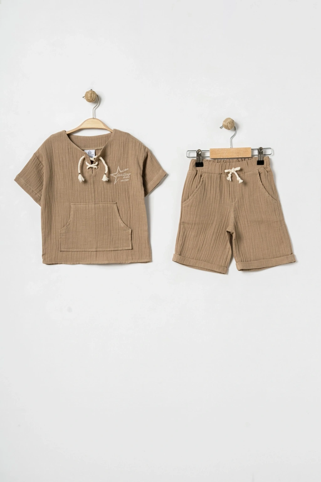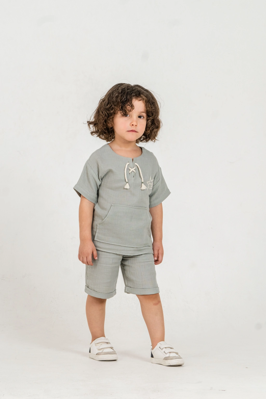 Bontino Kids olarak, miniklerin hassas cildine en uygun dokuyu Türkiye’de özenle ürettik. Yaz aylarının vazgeçilmezi olan %100 pamuk müslin kumaş yapısıyla tasarlanan bu takım, nefes alan dokusu sayesinde terlemeyi önler ve gün boyu konfor sağlar.